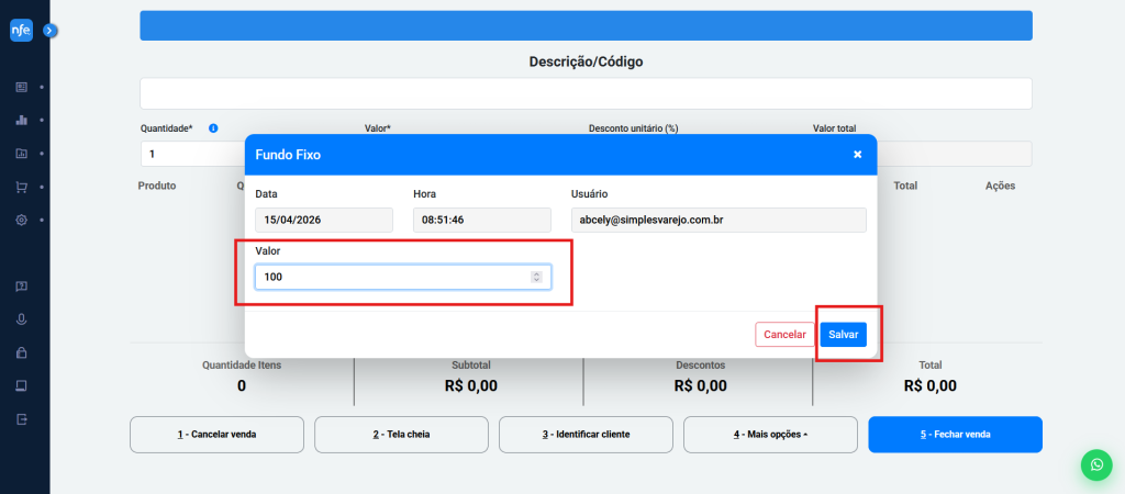 2- Se for a primeira venda do dia, o sistema solicitará o fundo fixo do caixa