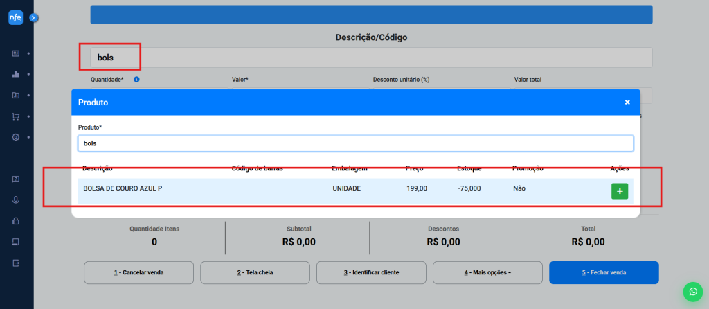 3- Digite o nome do produto (mínimo 3 letras) e pressione Enter.