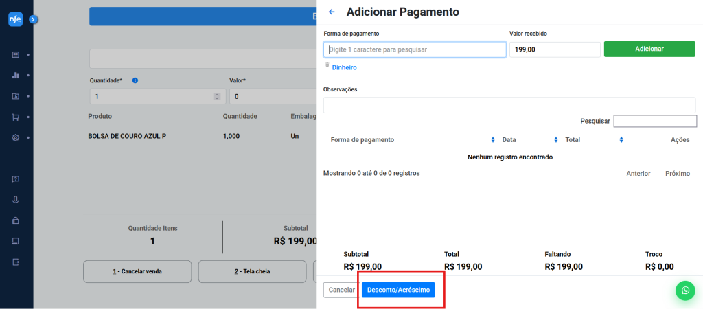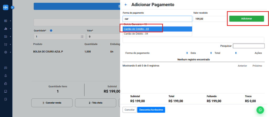 7-Escolha a forma de pagamento e clique em “Adicionar”