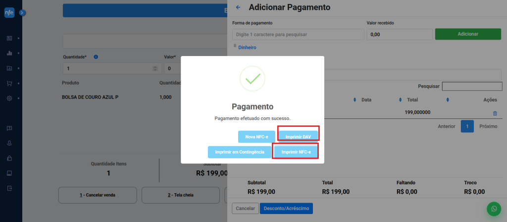 ✔️ Pronto! Sua venda foi finalizada e o cupom/NFC-e emitido.