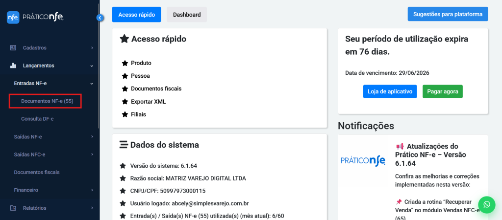 Pronto! O XML será importado para o Prático NF-e.