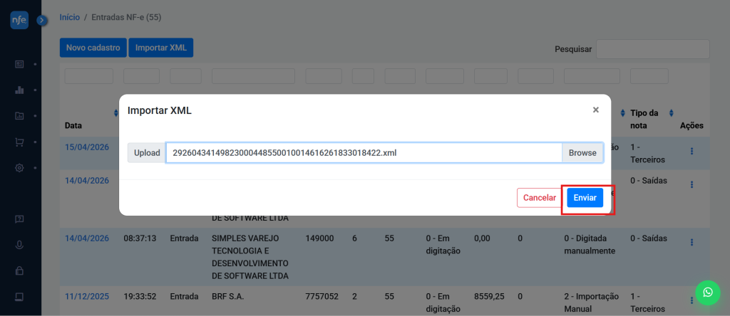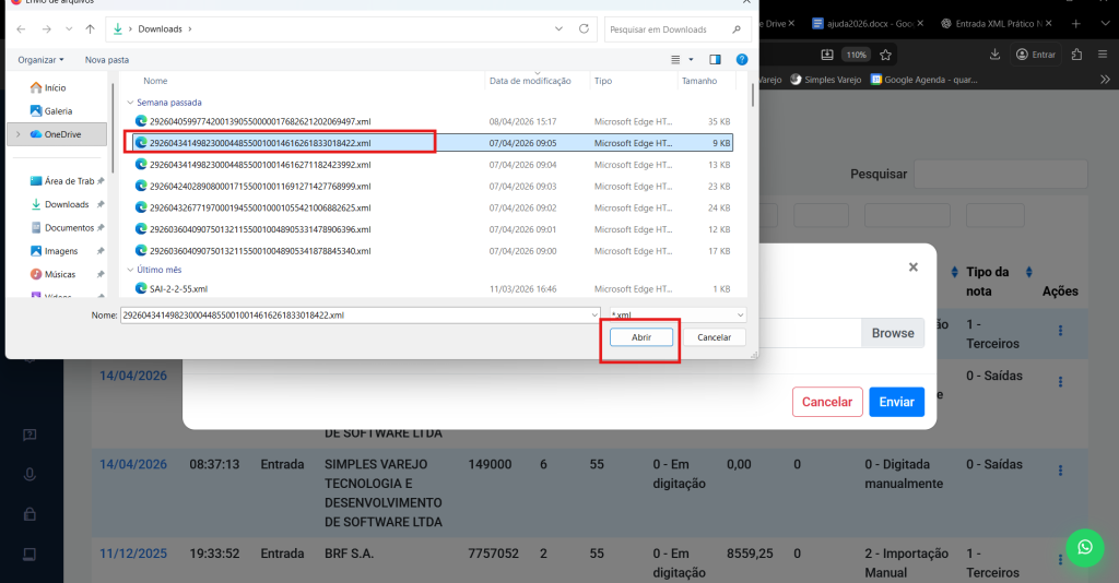 ⚠️ Observação: é importante que o arquivo XML já esteja salvo no seu computador.
