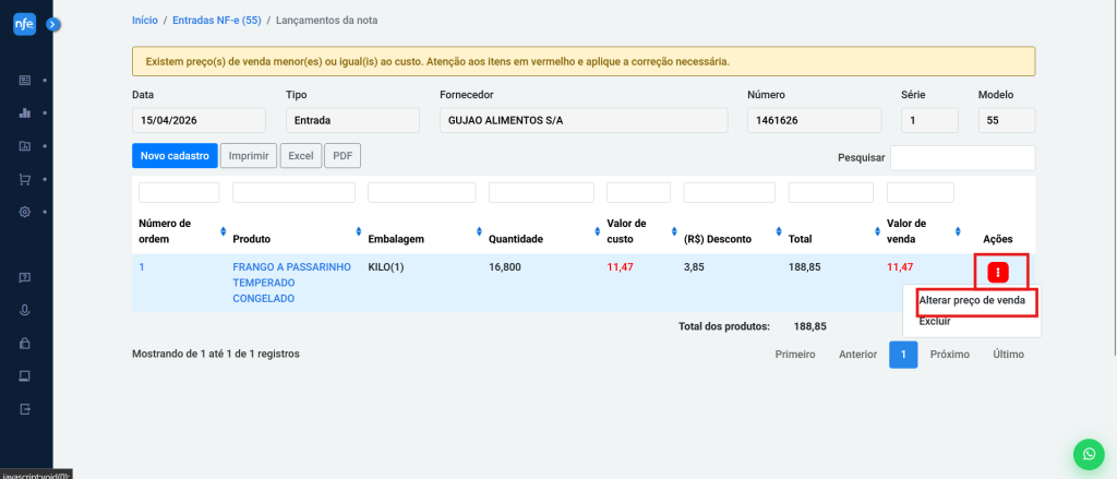 Caso precise ajustar os valores, como o preço de venda dos produtos:
